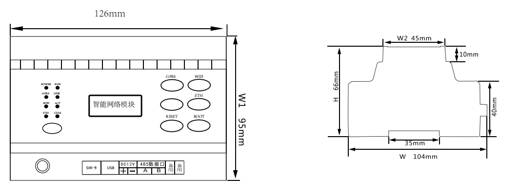 安裝方式:35mm 標(biāo)準(zhǔn)導(dǎo)軌安裝
